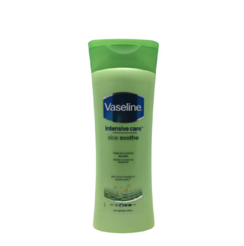 Intensive Care Aloe Soothe Lotion combined healing micro-droplets of Vaseline Petroleum Jelly with aloe (known to soothe) in a refreshing, fast-absorbing formula. The result is a lotion that calms and soothes the discomfort associated with dry, irritated skin and leaves it feeling deeply* moisturised and rejuvenated.
